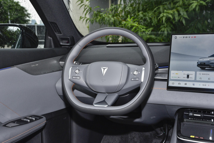 智能化配置也是这款车的一大特色。它没有传统的仪表盘,取而代之的是 50 英寸的 AR-HUD 抬头显示系统,车速、导航这些关键信息都能直接投射在前挡风玻璃上,开车的时候不用低头看仪表盘,能提升不少行车安全性。中控区域是一块 15.4 英寸的 2.5K “向日葵屏”,可以左右各旋转 15 度,用起来很方便。车机搭载的是高通骁龙 8155 芯片,系统运行起来很流畅,不会出现卡顿的情况。而且车机系统融合了 DeepSeek R1 大模型,支持多轮语音交互,就算你一次性说好几个指令,它也能准确识别并执行,平时开车的时候,动动嘴就能控制空调、导航这些功能,不用分心去操作屏幕。