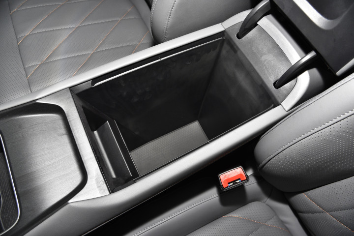 储物空间的设计也挺灵活实用的。后备箱常规容积是 492 升,而且是双层设计,下层可以放一些不常用的工具、杂物,上层放日常用品,拿取也方便。后排座椅支持 4/6 比例纯平放倒,放倒之后家里搬个大件物品,或者自驾游的时候放行李箱、帐篷这些装备,完全没问题。车头还有一个 159 升的前备箱,平时放充电枪、充电线这些东西正好,能让后备箱保持整洁。车内的小储物格也特别多,数了数有 30 多处,还有带保温功能的双层扶手箱,夏天可以放几瓶饮料冰镇一下,冬天能给咖啡保温,这些小细节考虑得还是挺周到的。